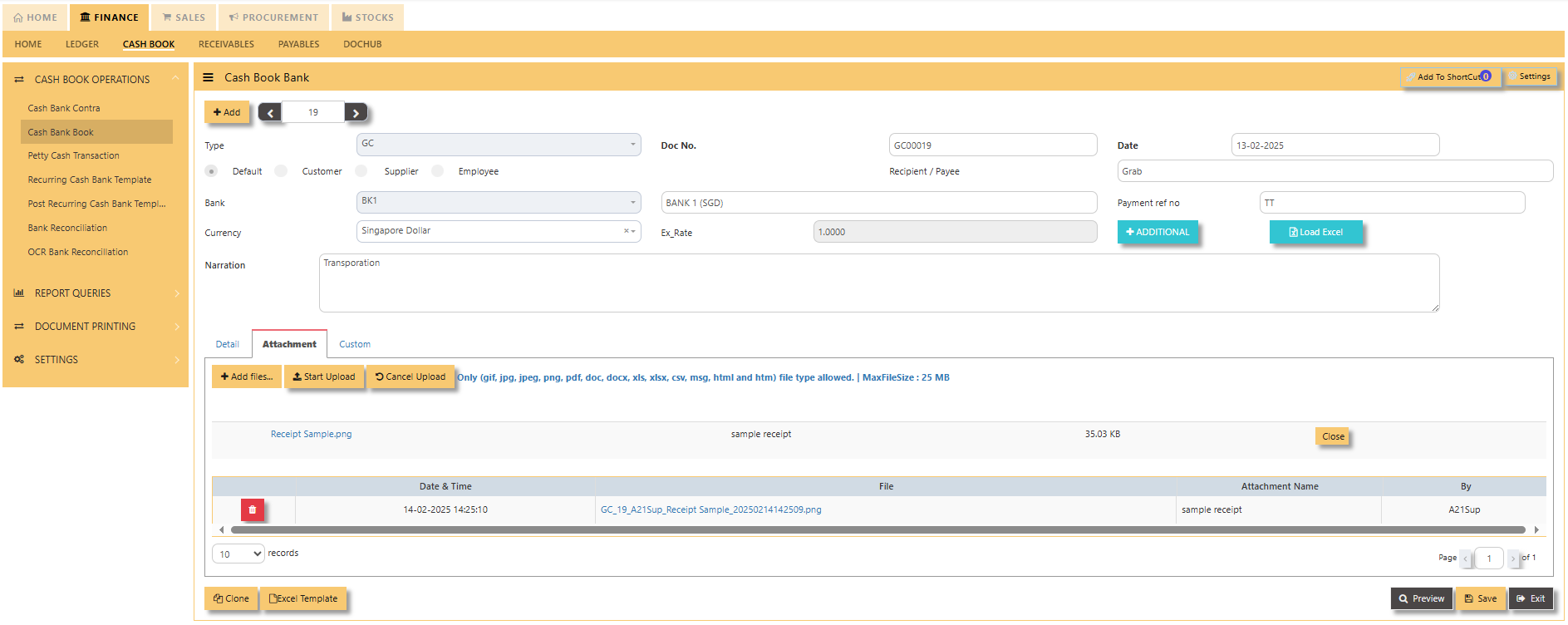 HOW TO ADD ATTACHMENT IN GC TRANSACTION?