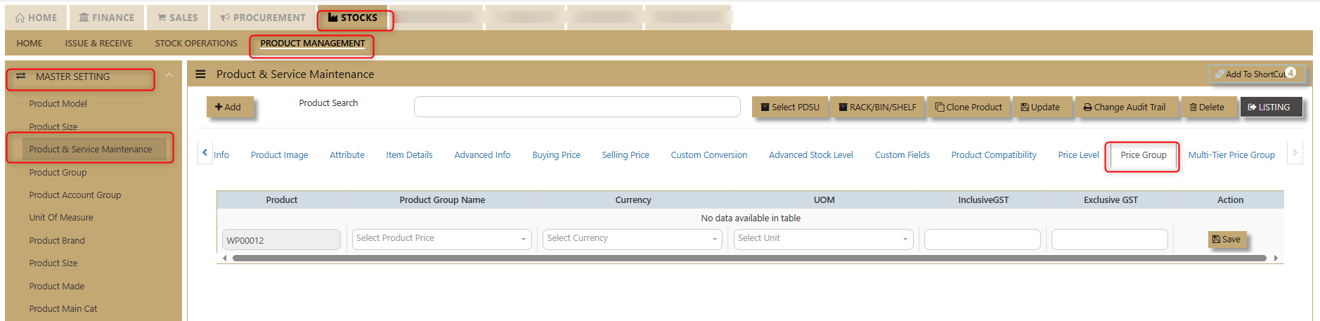 User may look and maintain the price depends on the "Price Type" selected under " Selling Price" Tab of Product & Service Maintenance. Below are the types selection: