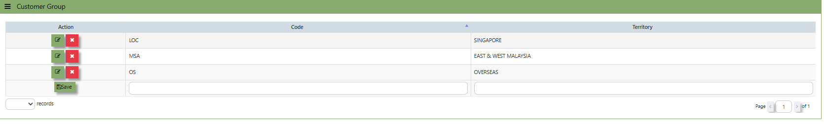 - Enter the Customer Territories as shown in the example above. For more flexible settings, user can indicate the Customer Territories according to the report needed. It will be part of the Advanced Training.