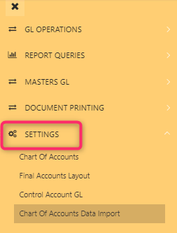 SETTINGS in UNIQ365 consists of CHART OF ACCOUNT, FINAL ACCOUNTS LAYOUT, CONTROL ACCOUNT GL and CHART OF ACCOUNTS DATA IMPORT.